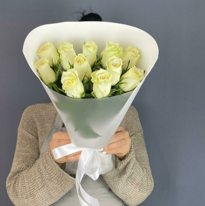 Купить букет из 11 белых кенийских роз в Нальчике